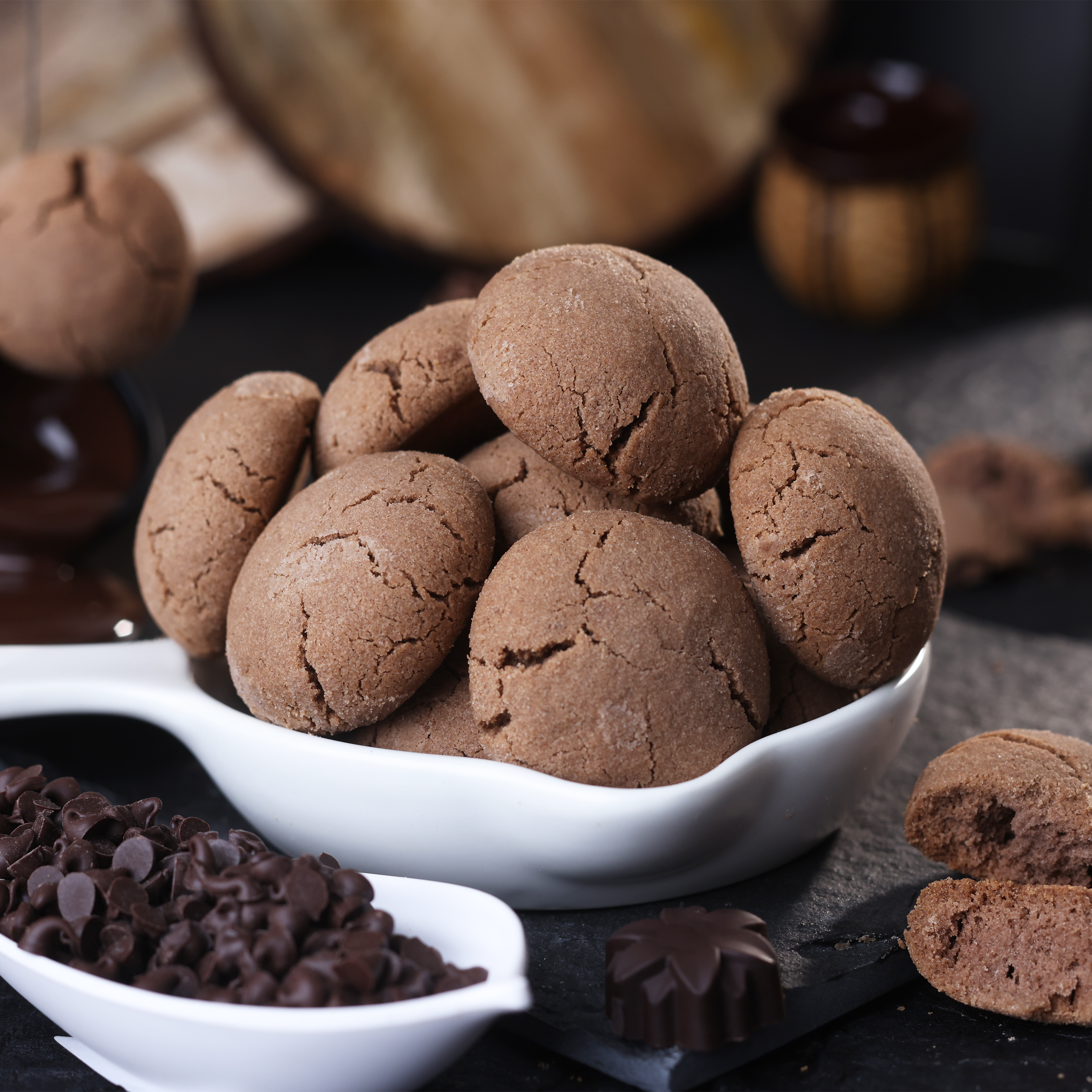 These buttery cookies are infused with rich cocoa and a touch of aromatic spices, creating a luxurious indulgence for chocolate lovers.